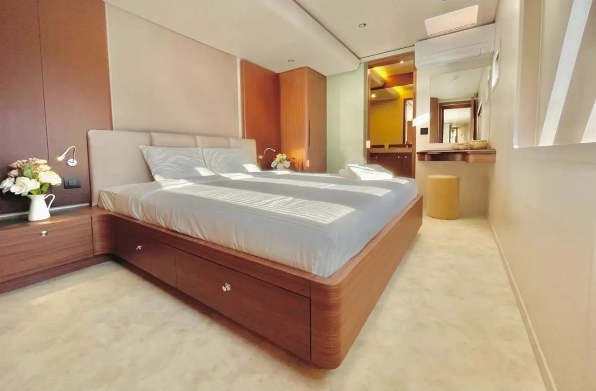 The yacht is described as a “floating apartment,” offering maximum comfort with plenty of space for sunbathing and relaxation. A large luxury catamaran for anyone who expects the highest level of comfort. Perfect for both family holidays and trips with friends.